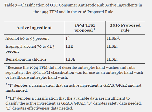 2019年4月12日,美國(guó)食藥品管理局(FDA)公布最終規(guī)則,涉及消費(fèi)者使用抗菌洗手液安全性和有效性。該規(guī)則生效日期為2020年4月13日,即自發(fā)之日一年后生效。 含有這些不合格活性成分的藥品需要在上市前通過新藥申請(qǐng)(NDA)或縮寫新藥申請(qǐng)(ANDA)批準(zhǔn)。同時(shí),也指出了合格的活性成分是乙醇(60-95%)、異丙醇(70-91.3%)、苯扎氯銨。